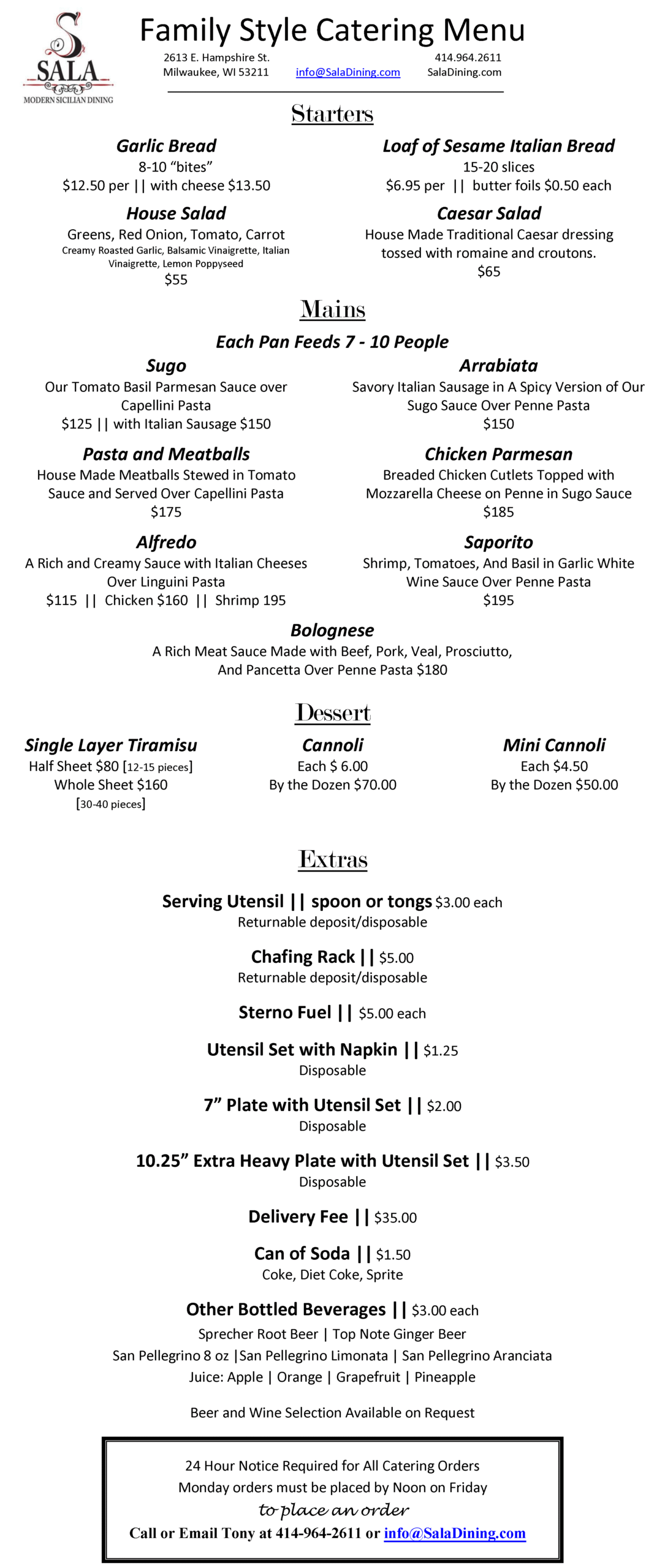 For catering on and off-site, please call and ask for Tony or submit our contact form